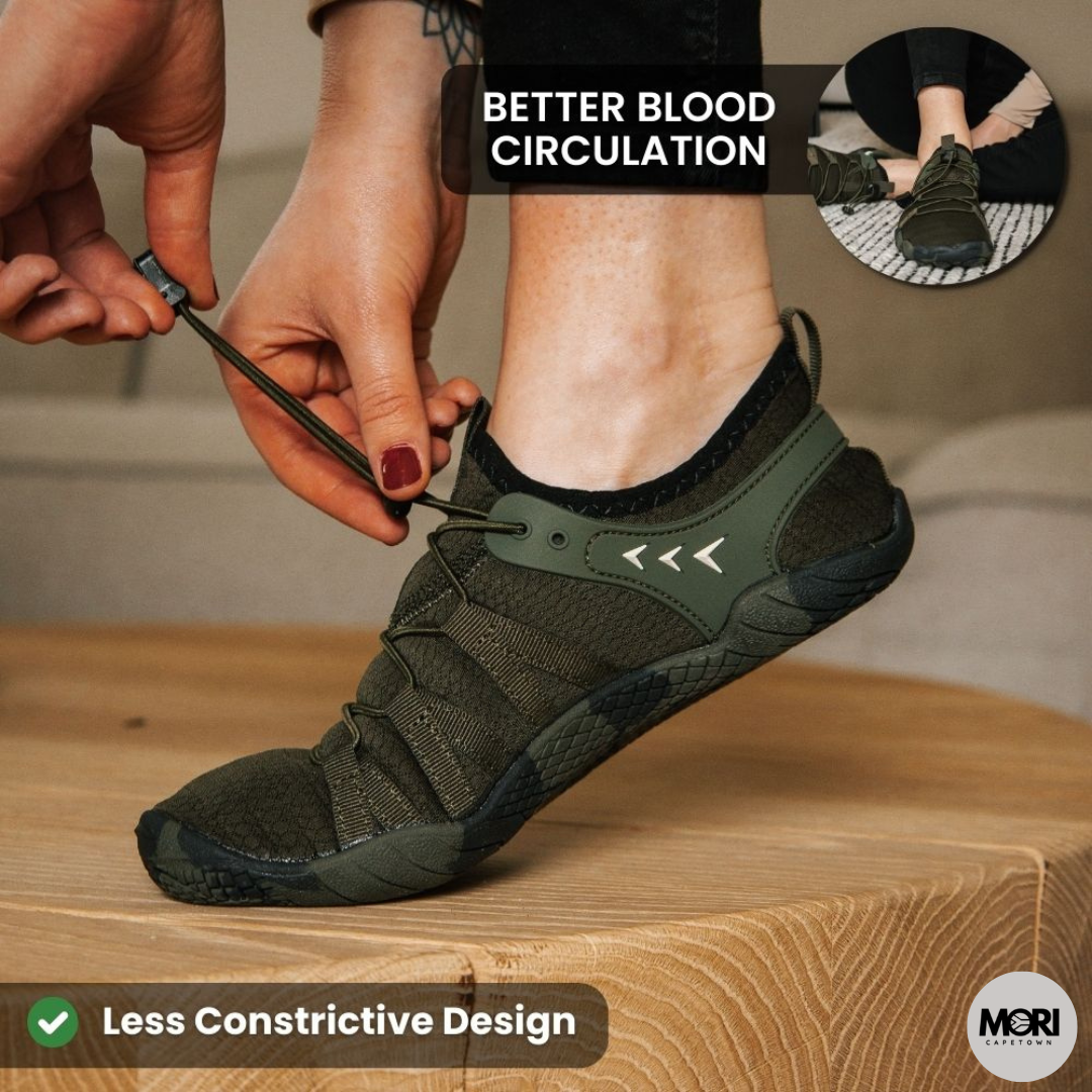 ✓ Enhanced Blood Circulation: The direct connection between your feet and the ground in barefoot shoes boosts circulation in your feet and legs. This not only improves overall blood flow and reduces fatigue but is also vital for managing neuropathy symptoms.