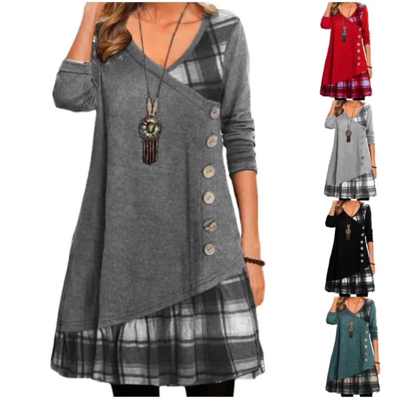 Effortless Charm – The Fay Patchwork Checked Button Dress